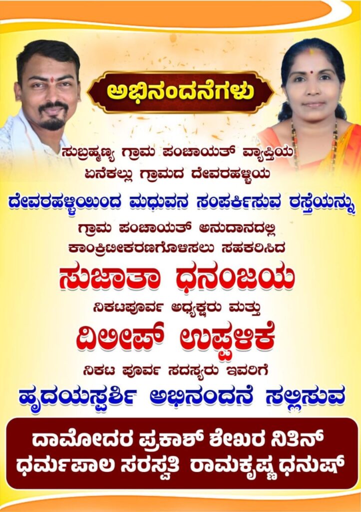 ಸುಬ್ರಹ್ಮಣ್ಯ ಗ್ರಾಮ ಪಂಚಾಯಿತಿ ವ್ಯಾಪ್ತಿಯ ಕಲ್ಲಾಜೆ ಇಂದ ಏನೇಕಲ್ಲು ಹಾಗೂ ದುರ್ಗಾಪರಮೇಶ್ವರಿ ದೇವಸ್ಥಾನಕ್ಕೆ ಸಂಪರ್ಕಿಸುವ ರಸ್ತೆ ಮಳೆಗಾಲದಲ್ಲಿ ಸಂಪೂರ್ಣ ಹಾಳಾಗುತ್ತಿದ್ದು, ಆ ಮಾರ್ಗದಲ್ಲಿ ಸಂಚರಿಸುವ ವಾಹನ ಸವಾರರು ಭಾರೀ ತೊಂದರೆ ಅನುಭವಿಸುತ್ತಿದ್ದರು. ರಸ್ತೆ ಗುಂಡಿಗಳು ಮತ್ತು ಕೆಸರು ತುಂಬಿಕೊಂಡ ಪರಿಣಾಮ ಸ್ಥಳೀಯರು ಸಂಕಷ್ಟಕ್ಕೆ ಒಳಗಾಗಿದ್ದರು.