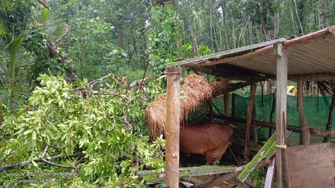 ಮೆಟ್ಟಿನಡ್ಕ: ದನದ ಕೊಟ್ಟಿಗೆಗೆ ಮರ ಬಿದ್ದು ಹಾನಿ